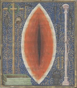 The tactile frees the narrator’s mind from the need to process and interpret. Beauty and value emerge from pain, from its ability to weave individuals into the spiderweb of collective existence. A medieval depiction of Christ’s side wound illuminates the final page of the text, epitomising admired and eroticised pain, and the love and longing is embedded in suffering.